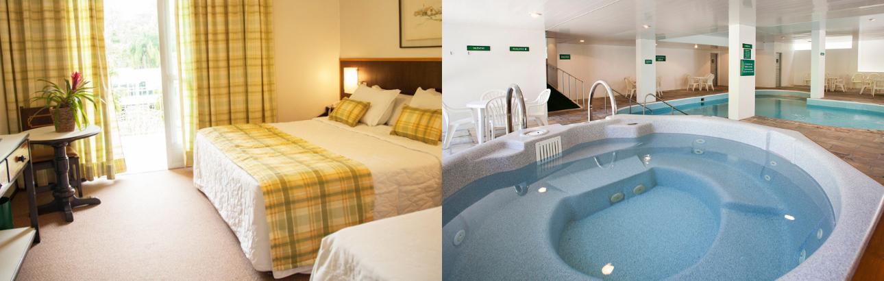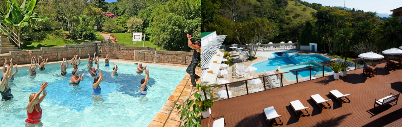 Un Resort rodeado por la exuberante Mata Atlántica de Santo Amaro da Imperatriz, con varias piscinas y baños de agua termal en el interior o repartidos en jardines de 10 hectáreas llenos de cascadas de las aguas que brotan de la Sierra do Tabuleiro, en Santa Catarina.